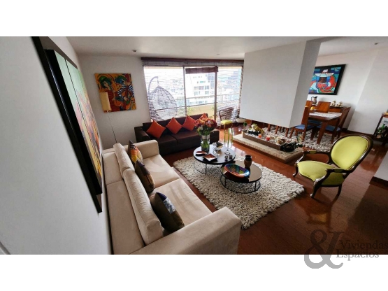 Apartamento de 152m en el conjunto Montemadero, en Santa Barbara Alta, con vista panorámica a la ciudad.  Cuenta con 3 habitaciones, la principal con baño con luz natural y ventilación, y walk in closet, las otras 2 habitaciones comparten baño que también cuenta con luz natural y ventilación. La zona social, sala y comedor con chimea, tiene salida a la terraza con vista panorámica a occidente, que recibe todo el sol de la tarde. Tiene también espacio de estudio.  La cocina con una ventana hacia el comedor, y espacio de comedor auxiliar.  Cuarto y baño de servicio, 2 parqueaderos independientes, y depósito.